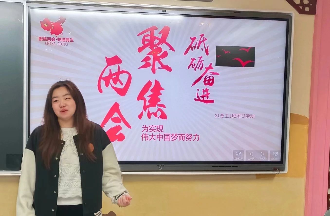 21金工1班团支部精心策划了一场集观看、研讨、模拟于一体的沉浸式学习体验。该支部成员围绕两会热点议题展开抢答,模拟人大和政协提交议案、讨论审议的过程,在团队协作中体悟、理解两会精神。
