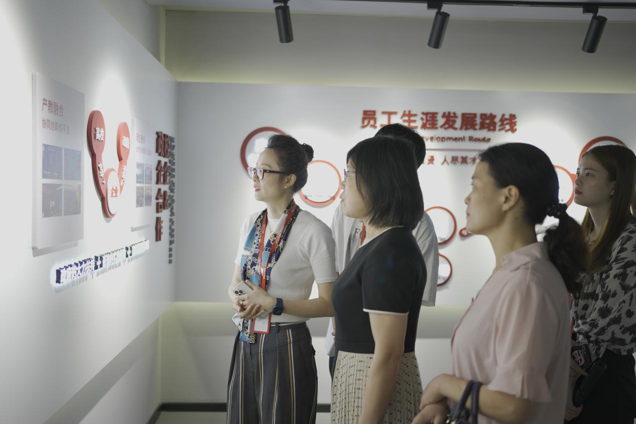 豪雅集团人力资源部经理孙云旗等热情接待,并带领调研队伍参观了企业部分办公区域和文化展厅,实地感受豪雅集团的办公环境和企业文化。