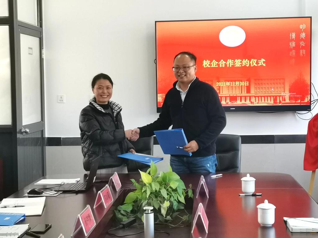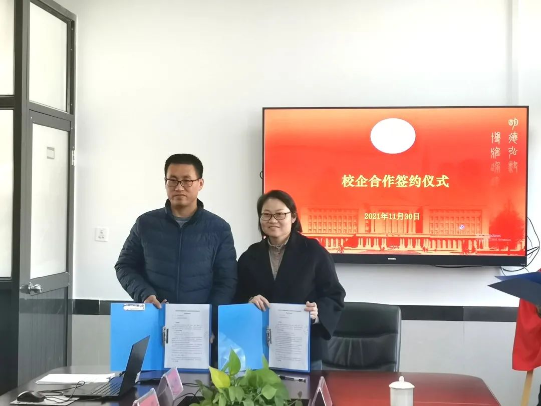 宋树理和周洪燕分别代表双方签署校企合作协议,并为合作基地揭牌。张伟慷、陈旭等与会人员共同见证仪式。