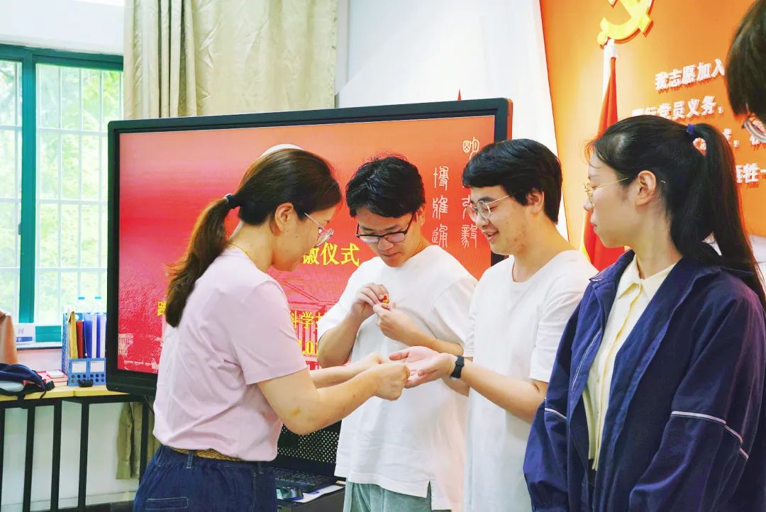 随后由91porn 党总支副书记叶益珍向新发展的党员授予党徽。新党员从叶书记手中郑重地接收过党徽,将其佩戴至外衣左胸中间位置,轻轻抚摸感受着这百年间的峥嵘岁月、今日的幸福生活、往后的繁荣昌盛,都会伴随着这枚小小党徽熠熠生辉。