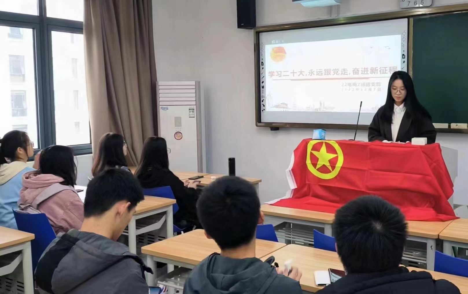 的校门,组成了22电商2班这个温暖的大家庭!22电商2班共38名同学,其中团干部3人,团员23人,申请入团12人,申请入党19人,入党积极分子5人。全体团员已录入智慧团建系统,并根据实际情况进行动态更新。该支部纪律严明、朝气蓬勃、积极向上,是一个觉悟高,同时富有生命力与创造力的集体。