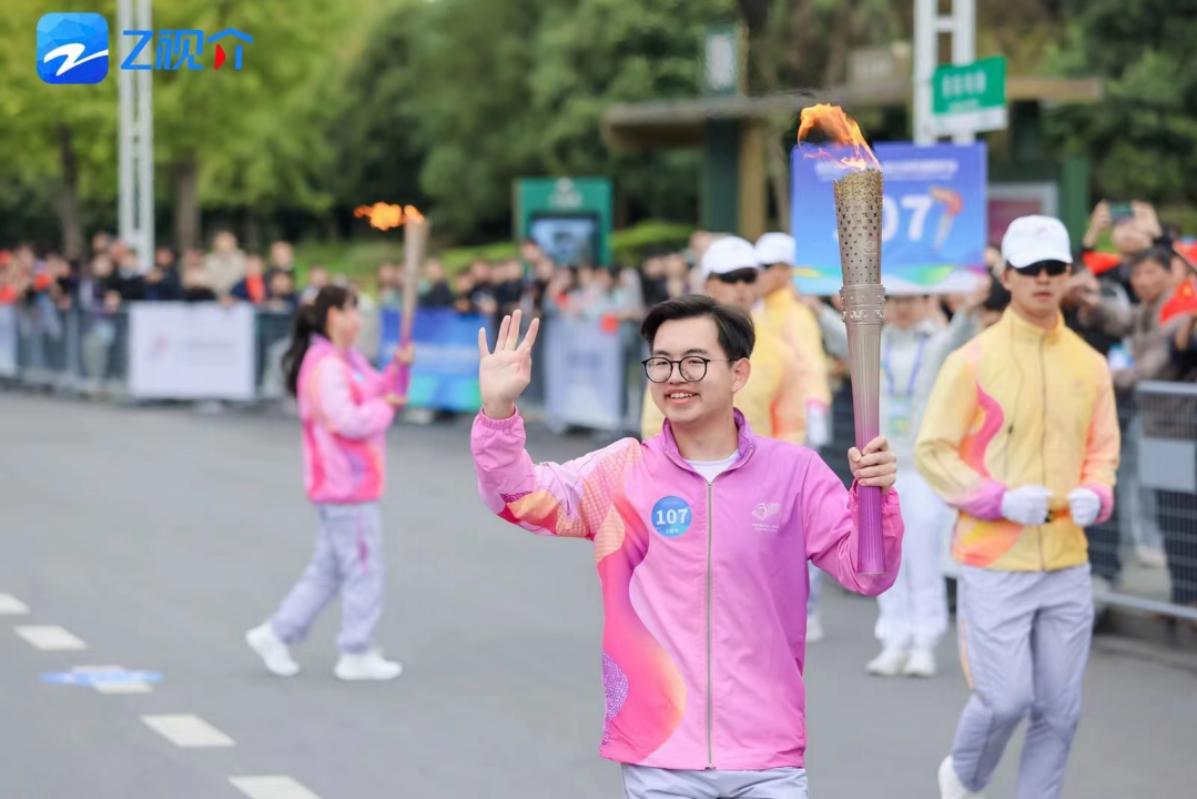 22级国际经济与贸易2班“小青荷”俞小磊担任杭州第4届亚洲残疾人运动会火炬传递桐庐站第107棒火炬手。他手持圣火,在奔跑中传播正能量,传承奋勇拼搏的体育精神。