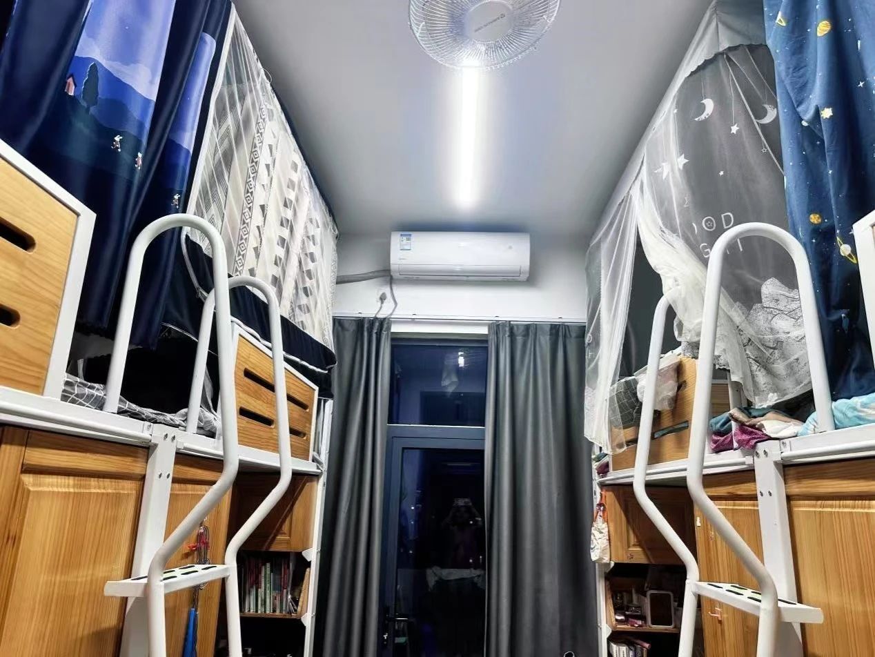 设计理念:“好来屋”。为了创造一个舒适、温馨、有利于学习和休息的空间。在这样的宿舍中,每个人都能够有自己的私人空间,同时也能够与室友们共享公共区域。这种风格积极营造了典雅质朴的整洁卫生的宿舍环境,增进了宿舍成员间的友谊和团结,对打造和谐、富有生机的校园文化具有重要意义。