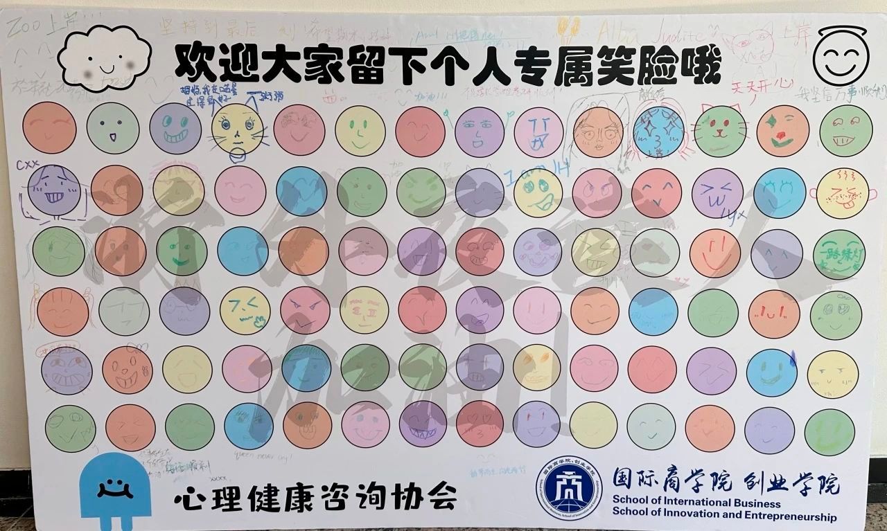 12月15日,学院在图书馆前举办了“请留下你的笑脸”自由创作活动,考研夜读人们拿起画笔,用色彩和线条描绘了自己的心情状态,也为自己写下了目标和祝福,在漫漫征程中,用笑脸自我激励,为自己加油打气,让紧张的备考时光增添了一抹温馨色彩。