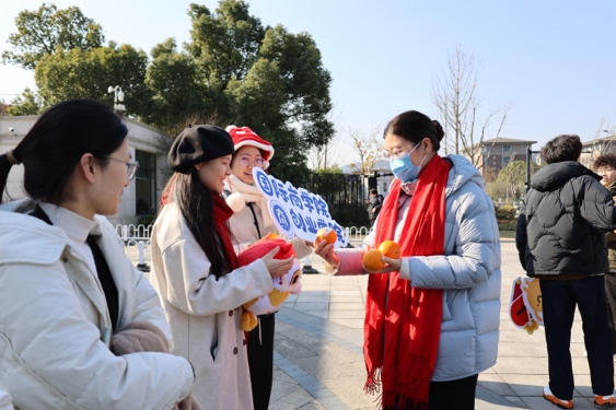 12月20日,学院特意为考研学子安排了“研途专车”,学院党委书记、副院长邱萍,副院长贾新明,党委副书记、纪委书记顾小明及全体辅导员共同为考研学子温馨送考,并送上橙子祝福考研学子心想事“橙”,希望考研学子一战成硕,“研”途顺遂。