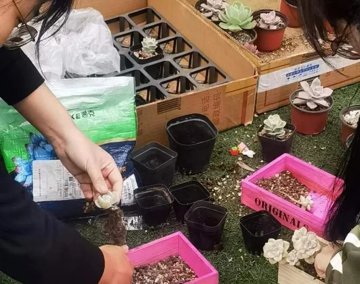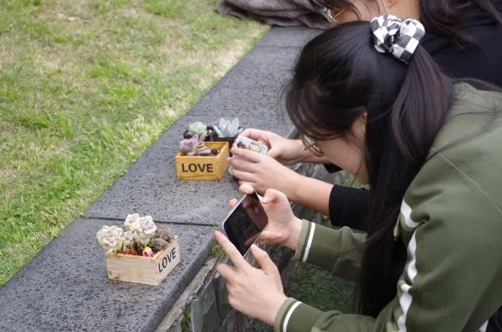 参与活动的同学们兑换到自己心仪的“肉肉”材料,纷纷大显身手,创作了许多精美的DIY多肉组合盆栽,留下欢声与笑语。通过此次活动,同学们与大自然亲密接触,解开春天的密码,感受植株的勃勃生机与活力,让身体与心灵放放风,在与大自然的互动中释放了身心的压力。