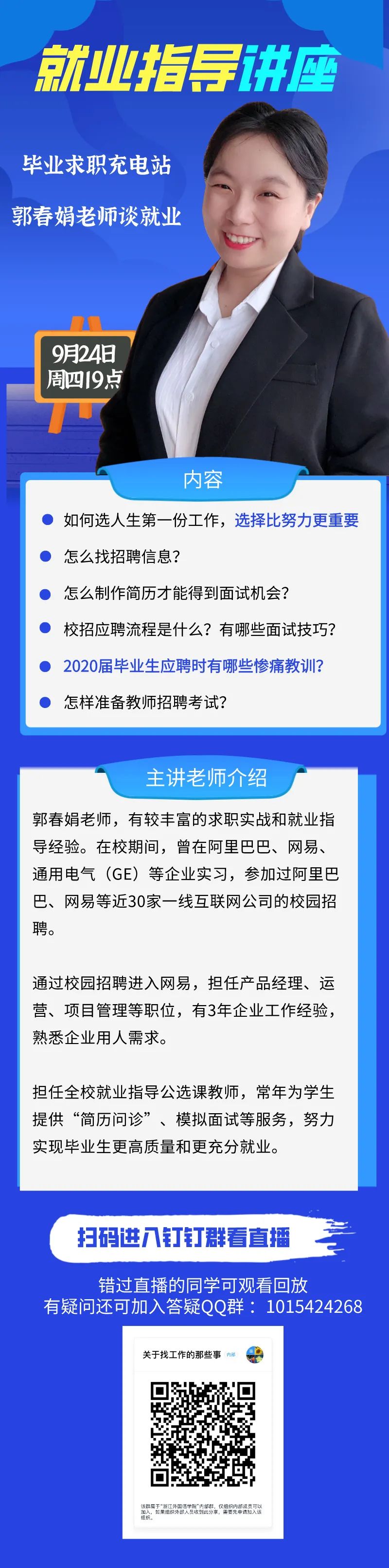 将在钉钉群召开就业指导“云”讲座