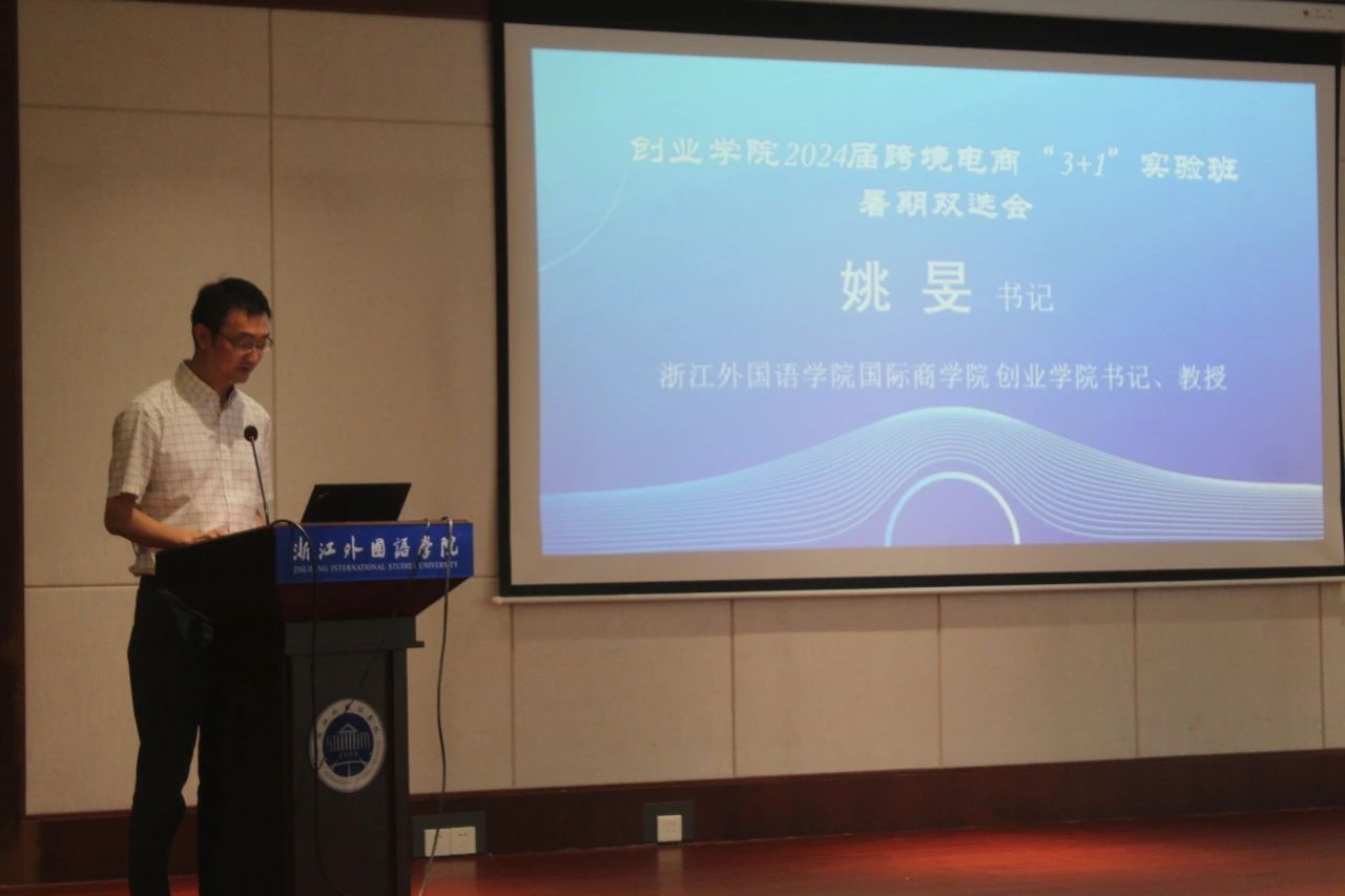 、创业学院院系概况和培养目标,并指出学院将秉承“立德树人”的根本任务,主动对接“一带一路”发展,紧扣浙江省数字化发展需求和学校“三地四域”发展战略,积极探索、创新实践,与校政企合作形成良性互动,共同打造长三角地区一流创新创业人才培养体系,并持续让跨境电商人才培养金名片更加发光发亮。