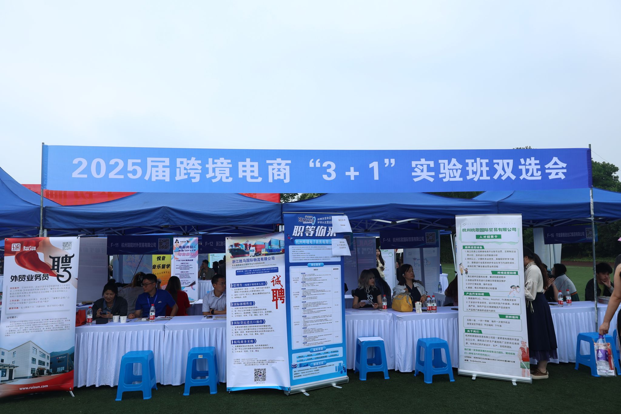 招聘会的一大亮点是设立的2025届跨境电商“3+1”实验班双选会,吸引了包括宁波凯越国际贸易、华立科技、双枪科技、杭州云端进出口等在内的30余家跨境电商行业领军企业,共提供了超50个优质岗位,激发了实验班学生的极大兴趣与积极参与。面对面交流中,学生们围绕薪酬福利、职业规划等核心议题与企业代表进行了深入讨论,企业方对实验班学生的专业能力和创新思维给予了高度赞扬,表达了对实验班人才的迫切需求和积极吸纳意向。