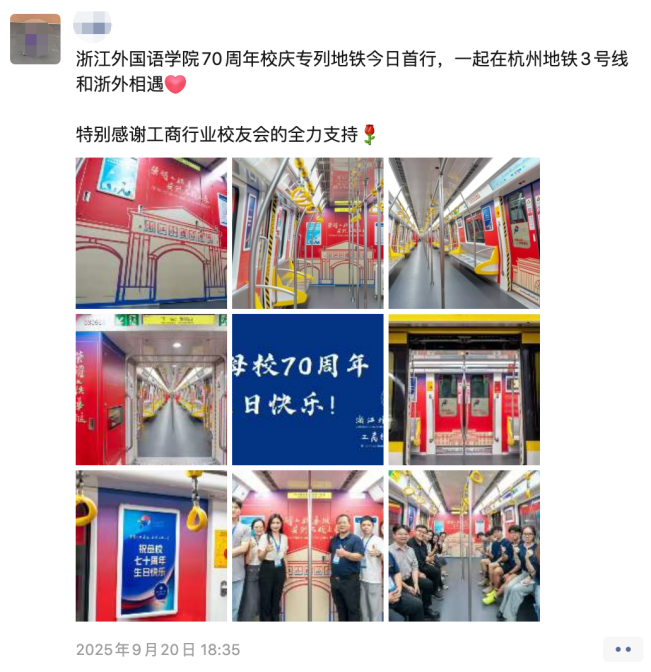“我与校庆专列合个影”主题活动已启动,“校庆专列”主题地铁已出发~即日起至11月7日,与专列合影并发朋友圈截图发送至[email protected],并备注学院、班级、姓名,即有机会获校庆周边!快约上同学,捕捉专列身影,定格专属的校庆记忆吧!