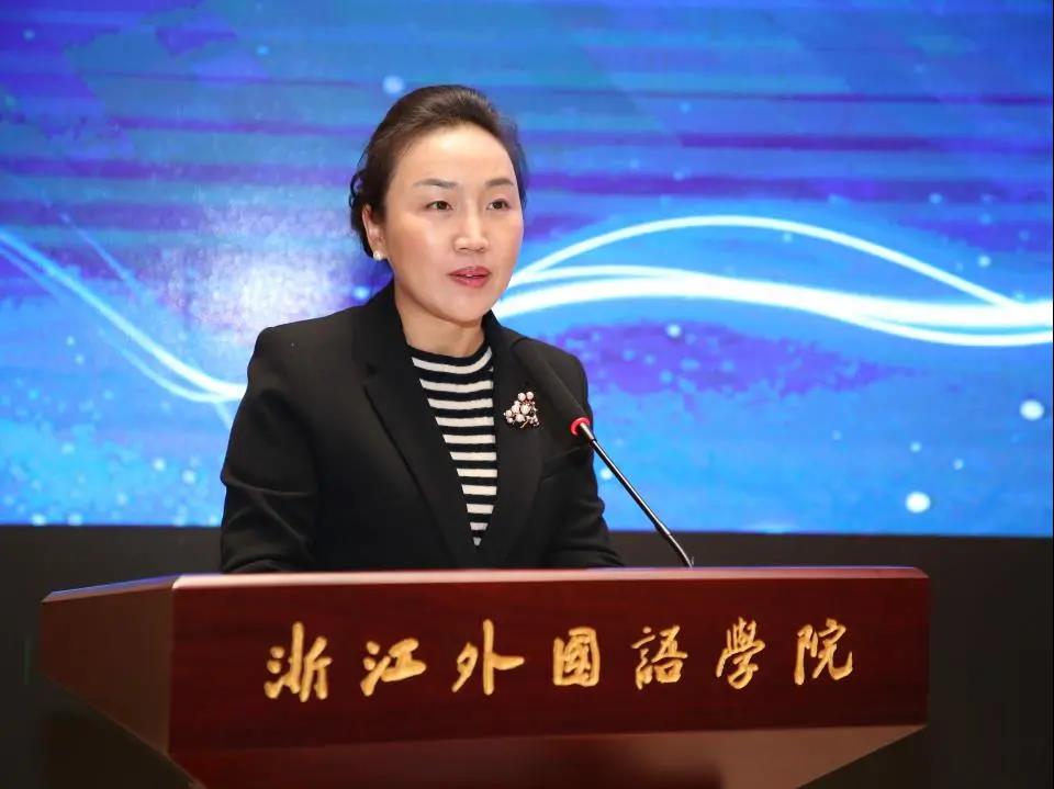杭州自贸区跨境电商处处长、一级调研员武长虹处长发表致辞。她提到杭州成立了全国首个跨境电商综试区并编入了《中国共产党100年大事记》,是跨境电商发展新的里程碑。她表示正因为有91porn 等高校的支持,综试区近六年在人才培养方面加大了投入力度,包括加强高校跨境电商人才的培养、开展社会化跨境电商人才培育工程、加快跨境电商产教融合等。最后,她表示期待此次会议为跨境电商全产业链人才的培养注入动能,并共享跨境电商发展新机遇。