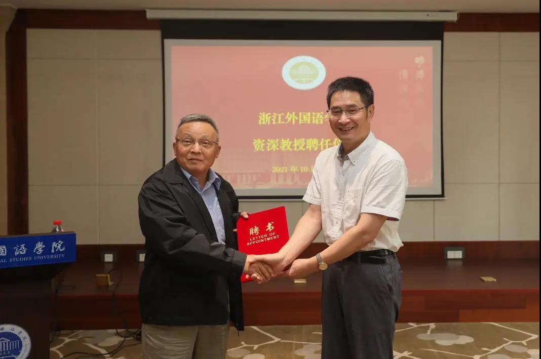 10月14日下午,我校于厚德楼102报告厅举行资深教授聘任仪式,聘任国务院特殊津贴获得者、教育部高等学校电子商务类教学指导委员会原副主任陈德人为我校资深教授。校长洪岗出席并为陈德人教授颁发了聘书。