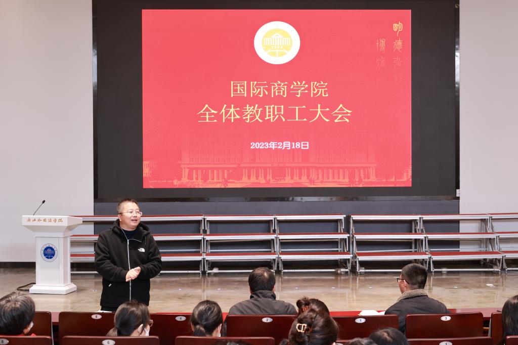 会上,张伟慷书记首先向全体教职工传达了2023年寒假校领导班子务虚会会议精神,动员广大教职工把思想统一到党委精神上来,从价值追求、办学理念、行动逻辑等层面提高认识,重点围绕着力推进提升教育教学质量、决战决胜“申硕”工作、做好亚运会志愿服务工作、办好跨境电商浦江研究院、加强干部队伍能力建设等年度重点工作和方向,以创新之心、改革之志、开放之意,以奋进的姿态、实干的精神开展新一年的工作,守正创新,数说发展。会上还通报了学院党总支转设学院党委,并设置学院纪委一事。