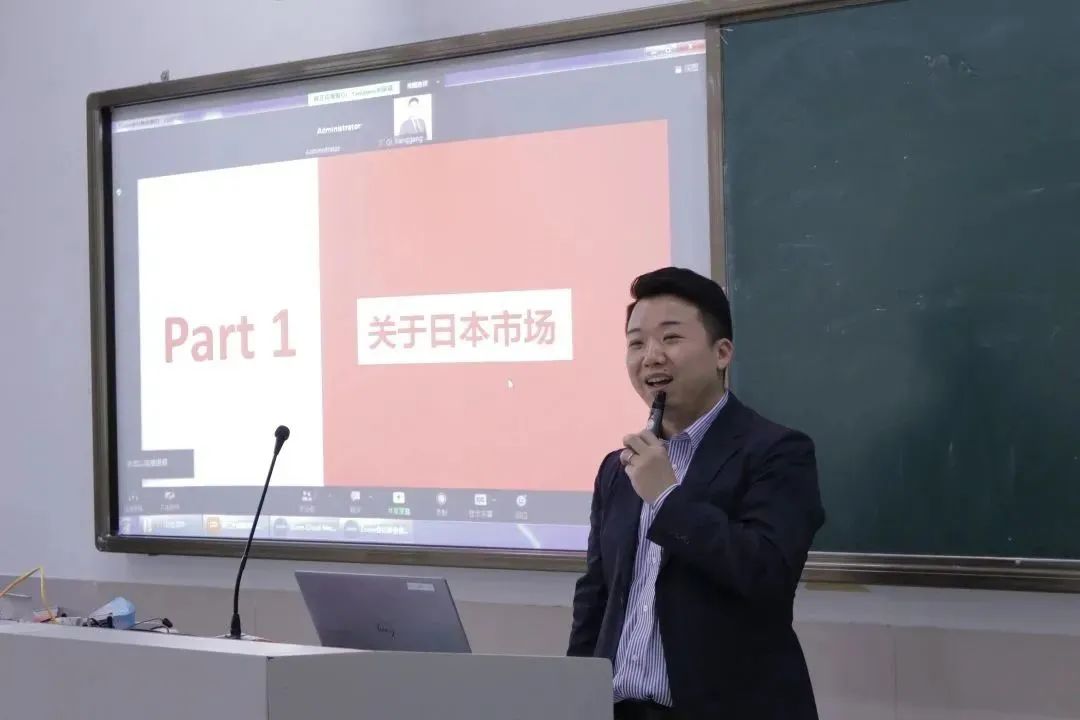 接下来是日本乐天招商负责齐总上台给同学们做关于日本市场、乐天市场及乐天市场选品的讲座。齐总积极与同学们进行互动,询问大家对日本的印象,以此拉近企业与学生间的关系。现场参会同学表现出了极大的热情,并不时与齐总互动,收到同学们积极的回答后,齐总开始就日本市场、日本的经济旺季、乐天市场以及乐天市场是如何选品来跟同学们进行了详细全面的讲解。讲解完毕,齐总让同学们提出自己的疑问,然后解答了同学们关于如何创业、选品、经营一个品牌的疑问。讲座尾声,同学们进行自由交流,均表示受益匪浅。