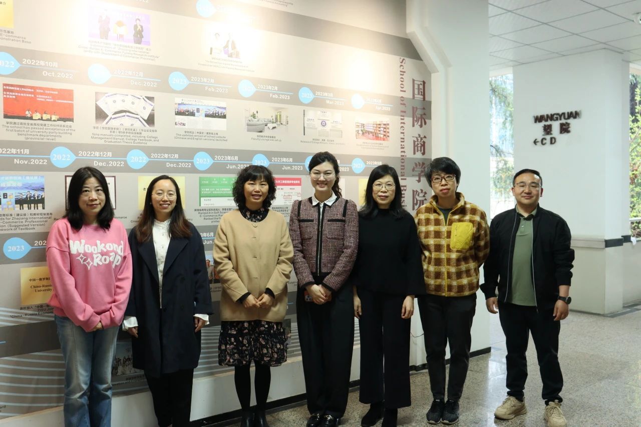 的概况,方美玉教授、何骅老师和陈胜男老师分别详细介绍了跨境电商专业的建设过程、3+1实验班、本科专业建设、校企合作等情况。陈昶副院长介绍了贵州师范大学国际教育学院的概况,以及对跨境电商专业的需求。双方就专业建设、跨境直播、留学生项目等交流了初步合作意向。