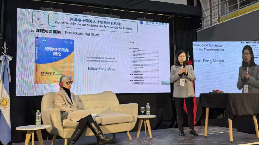 张环宙在致辞中指出,跨境电子商务为许多国家和地区带来了新的发展机遇,成为了推动全球经济增长的重要引擎,但背后仍存在语言、货币、文化和政策等差异,亟需高等教育提供人才和智力支撑。她表示,在全球化进程稳步向前的良好宏观环境下双方共同举办本次论坛,不仅是专家学者与企业家共同探讨跨境电商高质量发展的思想盛宴,更是高校参与搭建平台、增进友谊、助力建设中拉全面合作伙伴关系的积极践行,浙外与拉斐拉国立大学将合作成立国际科研平台,推动两校的学术联系,扩大两校在科研领域的研究,进一步为丝路电商产教融合高质量发展提供新动能、新优势。