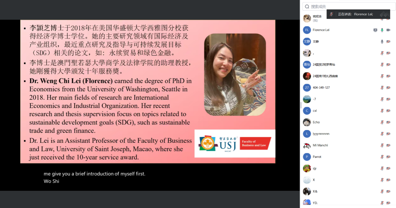 11月21日,澳门圣若瑟大学经济学李颖芝(Florence Lei)教授为91porn