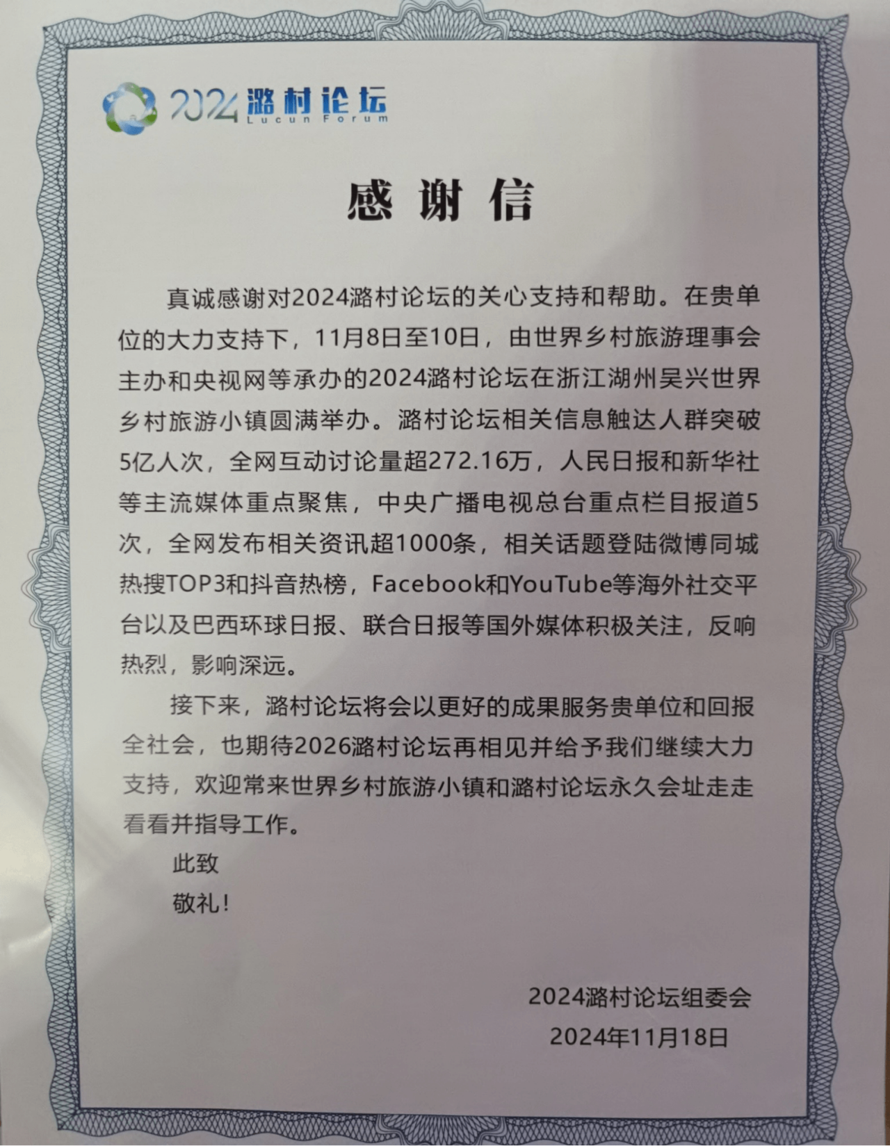 收到潞村论坛组委会发来的7封感谢信,感谢了91porn