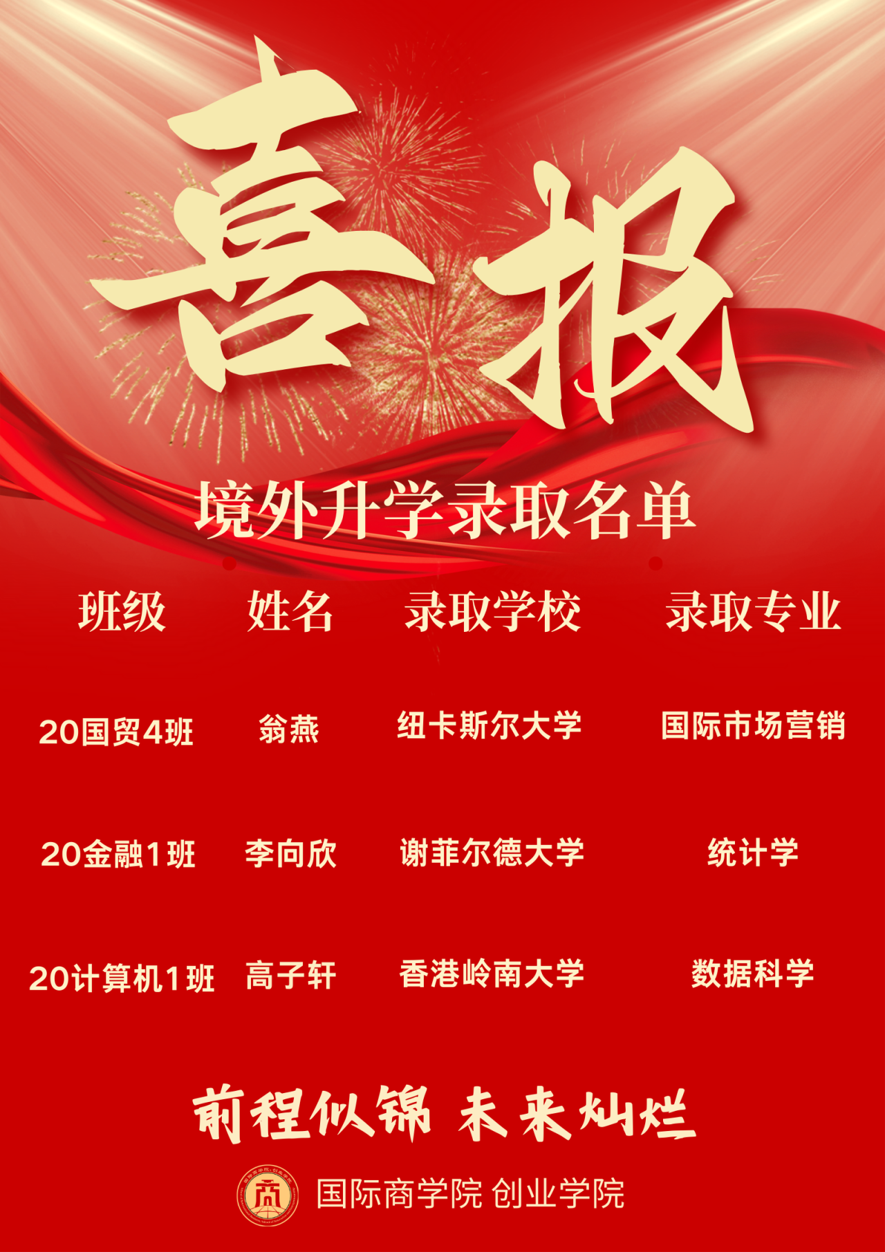 【升学喜报(十一)】2024届毕业生境外升学第五波!
