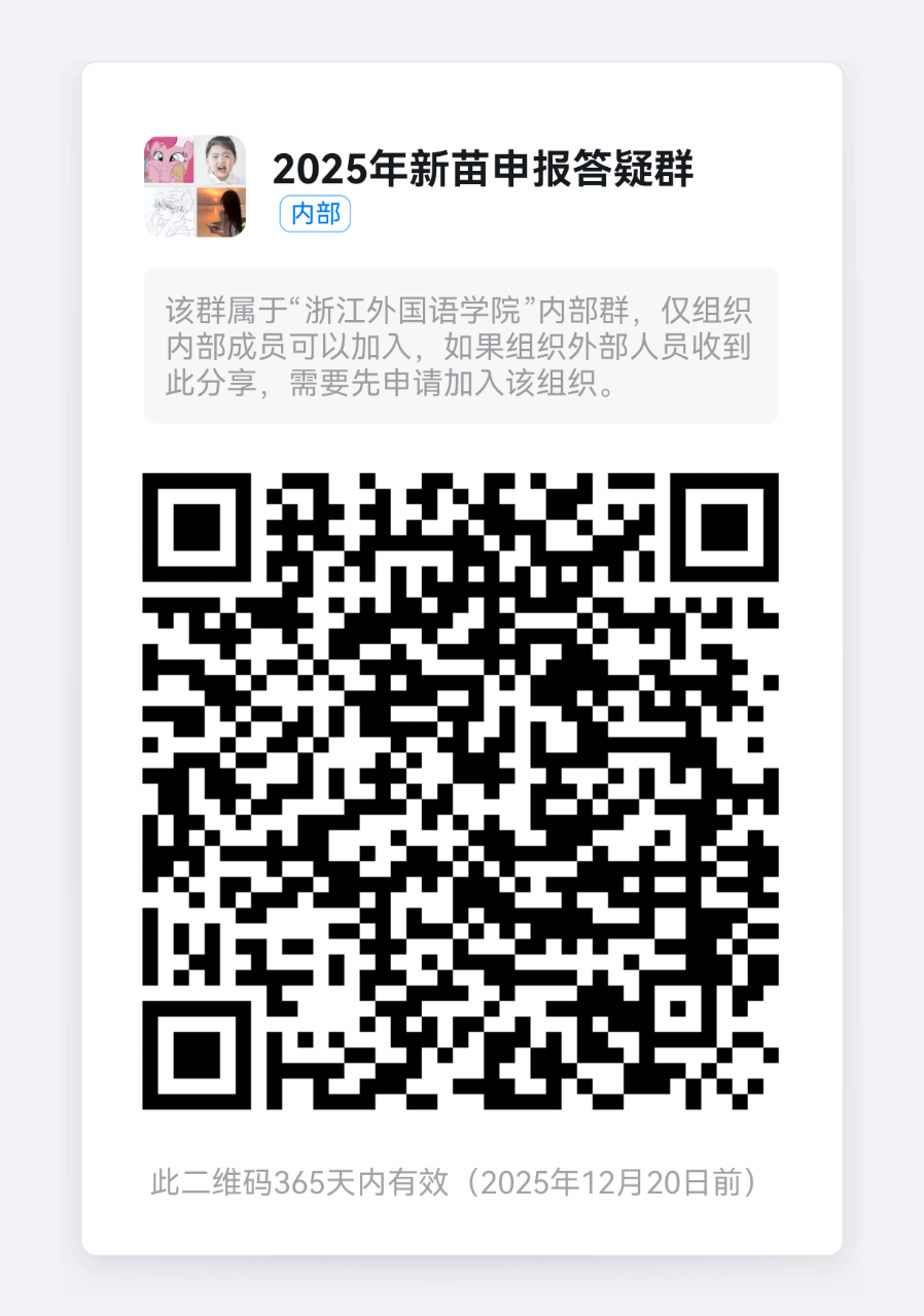 “凡益之道,与时偕行”,我们期待在新苗人才计划中听到属于你的种子破壳的声音。欢迎扫描下方二维码,进入商院钉钉群进行详细咨询,后续进展与项目通知将持续跟进。