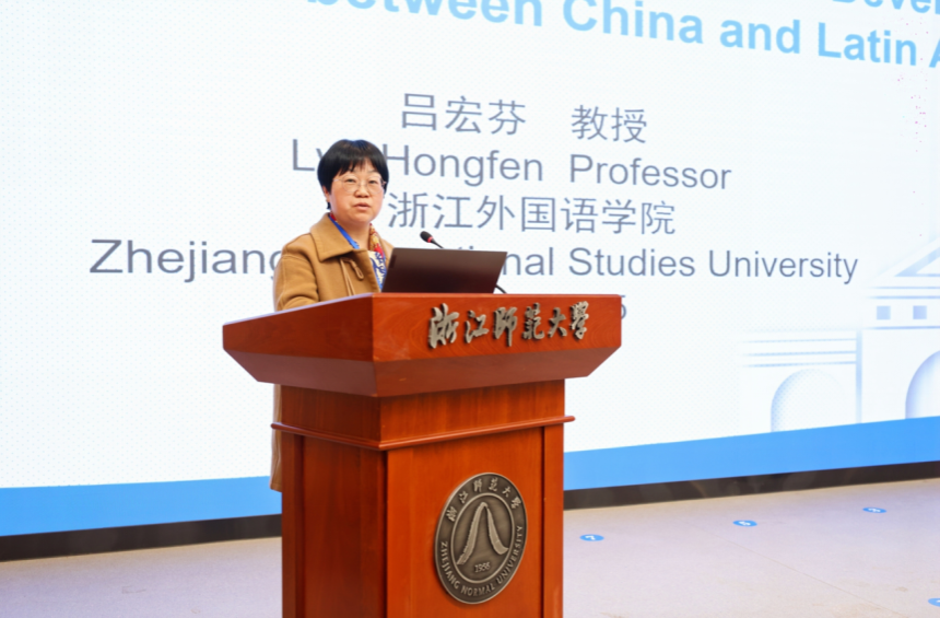 吕宏芬作了关于中拉跨境电商发展的主题报告,她指出,随着拉美地区互联网普及,消费需求攀升,中拉跨境电商发展前景广阔,现阶段部分品类已打开市场,销售额稳步增长,同时物流配送时效、支付安全等问题尚存。她针对现存困境,从优化物流线路、加强支付监管等多方面提出了针对性建议。