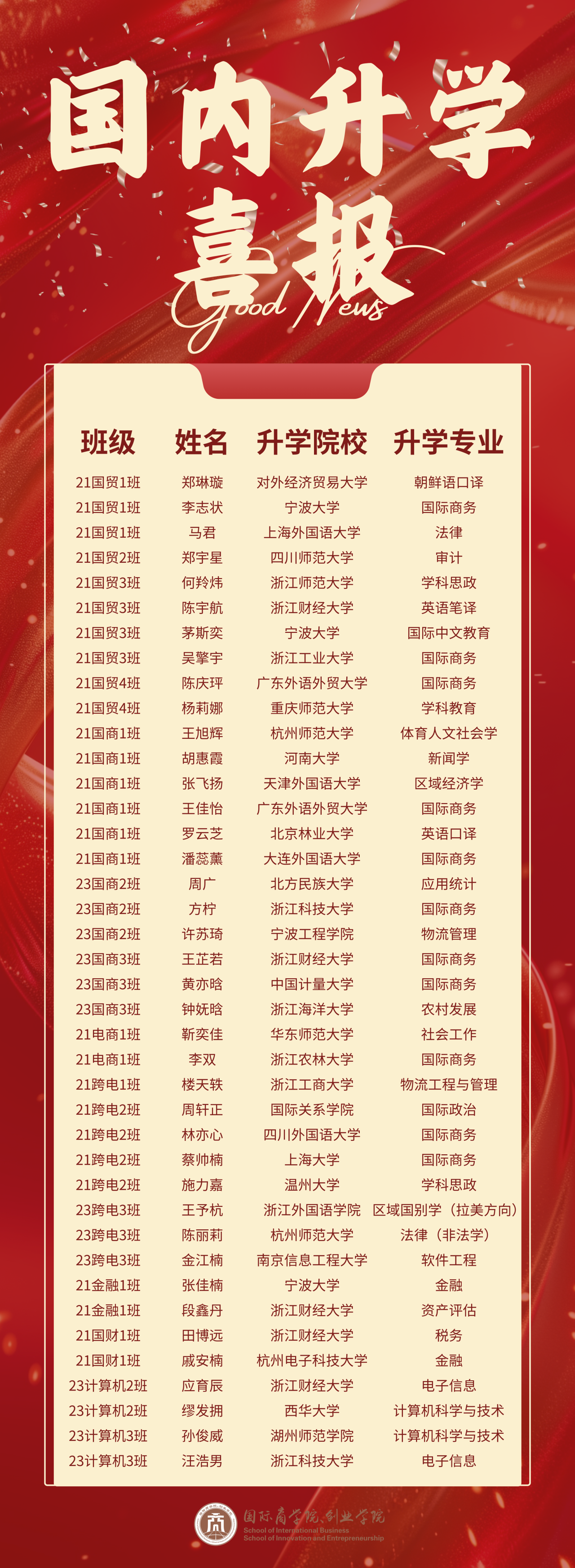 荣耀属于每一位拼搏的考研学子,属于辛勤付出的教师团队,也属于所有支持学院发展的师生与家长。祝愿2025届考研上岸的同学们在新的征程中继续奋进,也期待更多同学以他们为榜样,在未来的求学路上实现梦想!
