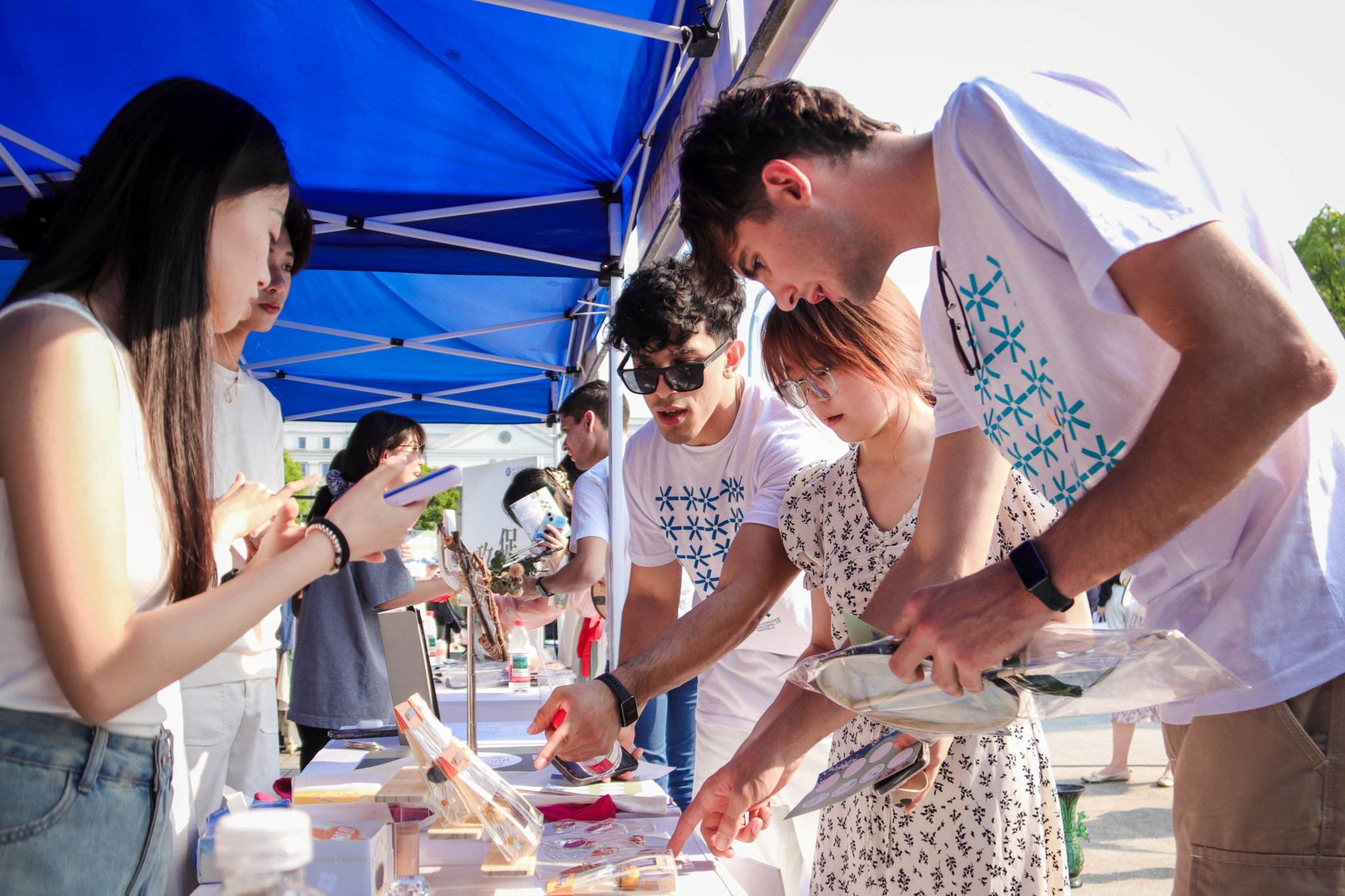作为文化节亮点之一,“宋韵·浙潮”集市吸引了30多个创意摊位入驻。这些摊位既有来源于校内创新创业的学生团队,也有来源于校友企业。