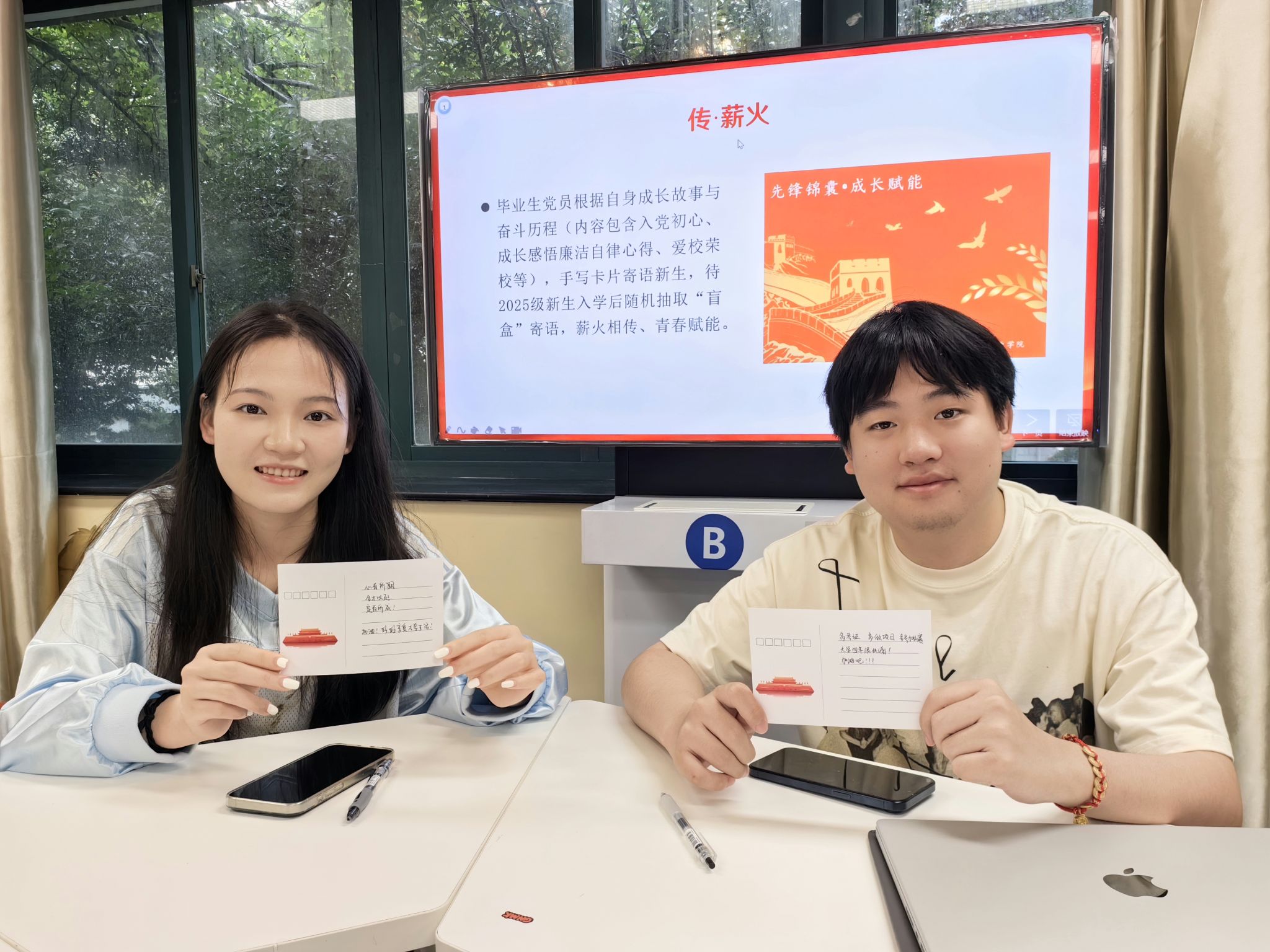 优秀毕业生党员结合考研、就业、基层服务等经历,将奋斗感悟与廉洁寄语手写制成“盲盒锦囊”,以“过来人”视角为新生标注“廉洁雷区”,待2025级新生入学时随机抽取。这份跨越年级的“廉洁接力”,让“扣好人生第一粒扣子”的嘱托通过文字实现代际传递。