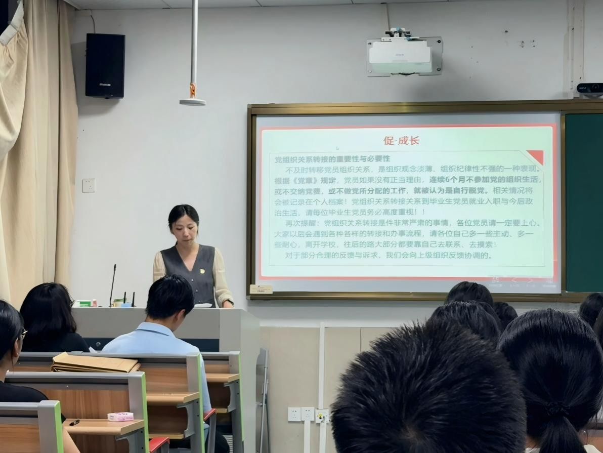 各支部书记详细讲解了党组织关系转出规范、党员组织生活延续等实务内容,将党员档案规范管理、转接流程透明化作为廉洁教育切入点,强调组织关系转出不是党性教育的终点,而是终身成长的新起点,引导毕业生党员以“组织生活不断线”的自觉,推动组织纪律意识转化为终身廉洁自觉。