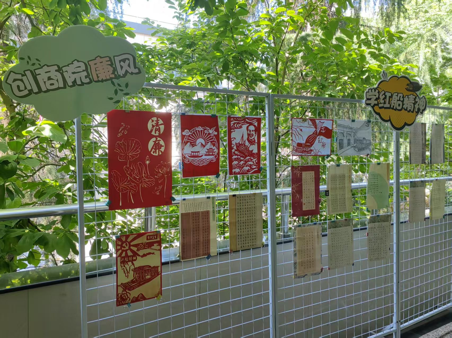 2025年是“红船精神”提出20周年,学院举办了“学红船精神,创商院廉风”书画作品比赛,获奖展品在毕业季集中展出。在观展过程中,通过解读“莲(廉)花”“竹节”等意象的廉洁寓意,参与“红船精神与新时代廉洁文化”主题研讨,在艺术熏陶中感悟“党的百年奋斗史也是一部廉洁发展史”的深刻内涵。