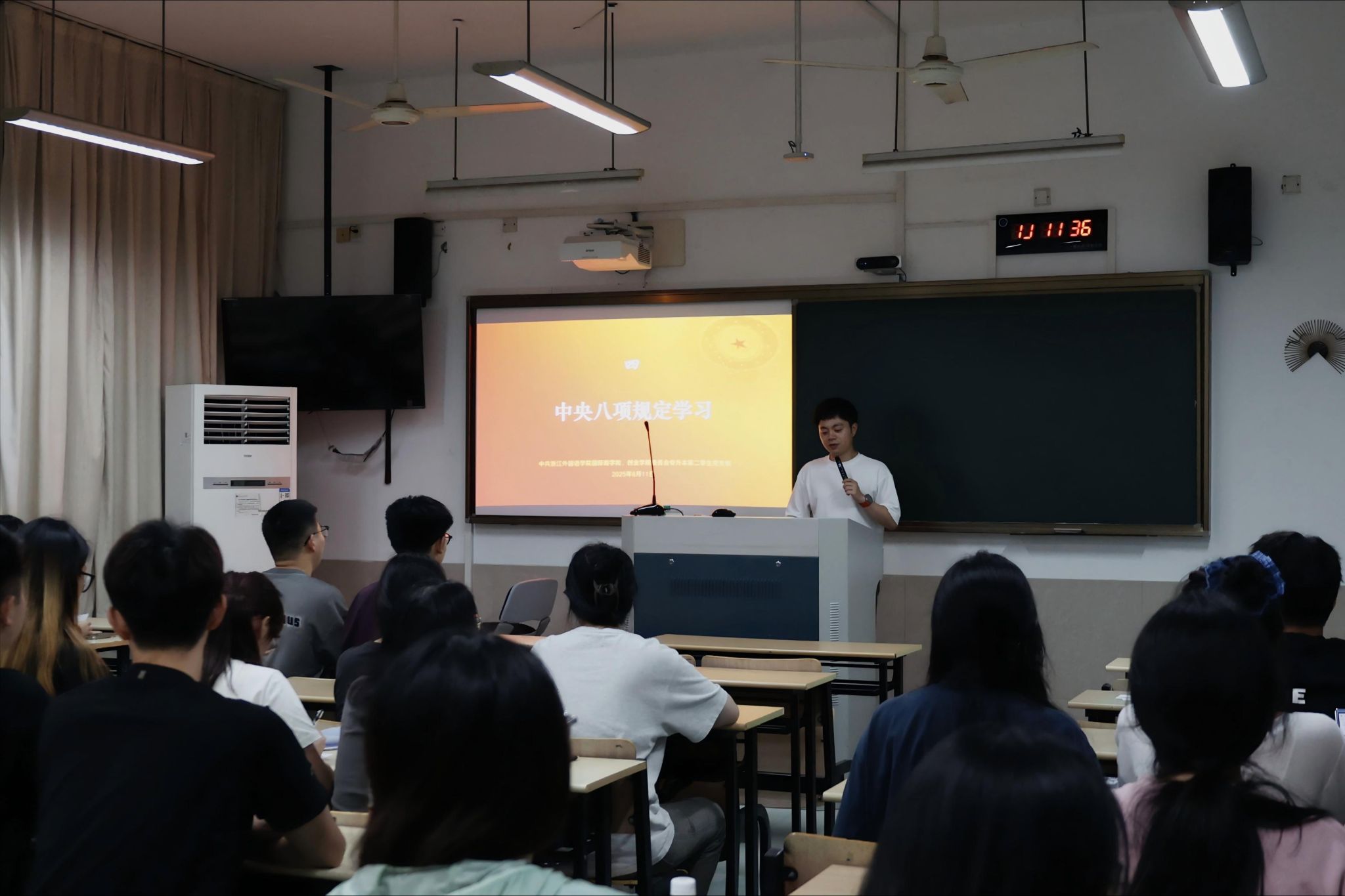 各党支部开展了“中央八项规定精神专题学习”主题党课,结合高校学术不端、违规宴请等典型案例剖析纪律要求,以真实案例敲响警钟,引导学生强化纪律规矩意识,明晰“底线即生命线”的廉洁准则。