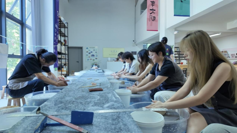 在陶阳里街区,实践团成员们跟着一位年近七十的老匠人学习揉泥技法,亲身体验“看似简单的揉泥,要力道均匀、粗中有细,没几天功夫练不成”。老师傅一边演示一边叹气:“七十二道手工制瓷工序,现在能学全的年轻人寥寥无几,他们耐不住性子耗在作坊里。”成员们注意到,街区里多数作坊从业者年龄都在50岁以上,年轻面孔屈指可数。