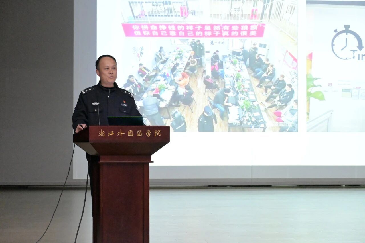 马冲警官以“反诈防骗”为核心开展安全教育讲座。他通过典型反诈视频引入主题,系统讲解电信诈骗的定义与危害,结合刷单诈骗、新型冒充公检法诈骗等真实案例,揭示各类骗局的作案手法与套路。他强调,“时刻保持警惕是最好的自我保护”,并给出关键防范建议:坚决不外借银行卡、电话卡,对陌生电话、链接、账户保持高度警惕,牢记96110反诈专线,遇可疑情况及时求助。