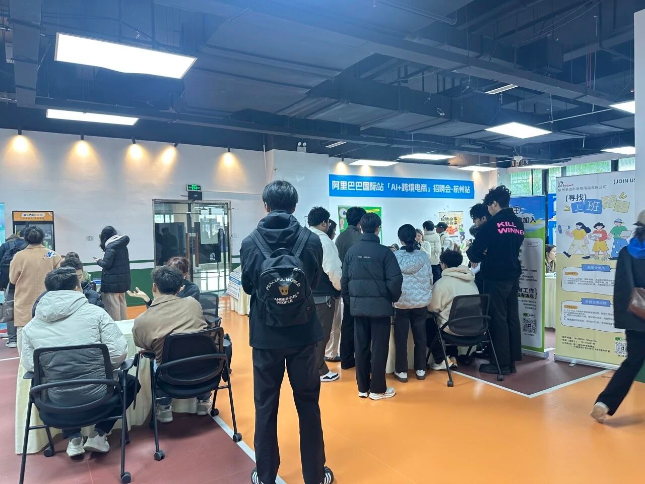活动现场设有国际化人才招聘专区,参会同学携带简历积极与超50家设展的跨境企业进行面对面沟通,深入了解人才招聘需求、寻求实习就业机会。师生一行还参观了阿里国际站孵化中心和选品中心,零距离体验数字化贸易新基建,实地感受跨境行业发展新貌。