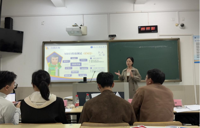 第四届职业生涯规划大赛就业赛道一等奖获得者俞小磊担任本次比赛评委。学院辅导员陶张静娴、陈体杰、陈姬忠出席。