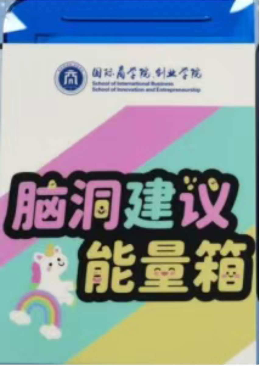 在学习或生活中,是否突然迸发过“如果这样改会更好”的灵感?或许是提升学习效率的小妙招,或许是便利日常生活的新方案,又或是丰富校园活动的创新思路——别让好想法被埋没!“脑洞建议能量箱”专为你的奇思妙想而来,所有建议将逐一梳理,优质且可行的创意将对接相关部门讨论实施,让你的“小脑洞”转化为改善校园的“大能量”!