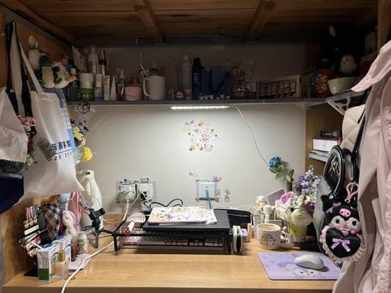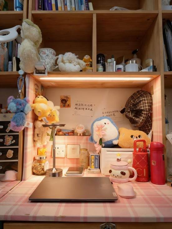 治愈氛围营造:运用可爱的玩偶、贴纸、插画等元素,传递轻松愉悦的情绪,让寝室成为“心灵充电站”。