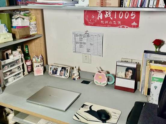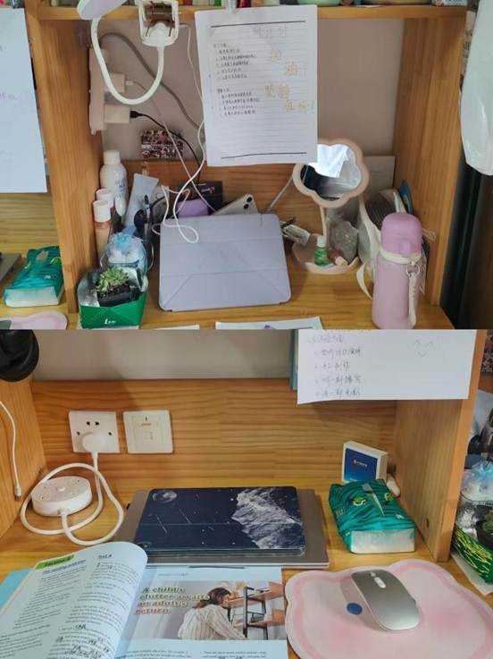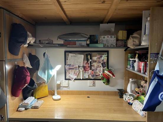 核心理念:我们致力于将寝室打造为一个“作息规律、环境舒适、成员互助”的现代化高效能休息与学习共同体。我们要把“睡”和“学”形成正向关联。保证全体成员获得充足睡眠,从而保障白天课堂和自习的绝对高效。我们的桌面以学习用品为主,做到了“工位”整洁。因为保证了充沛的精力,本成员在学习上“干劲十足”,无迟到早退现象,并积极参与各类“外部业务拓展”(即竞赛和志愿活动)。我们明白,只有晚上“关机”充好电,白天才能“满血运行”。