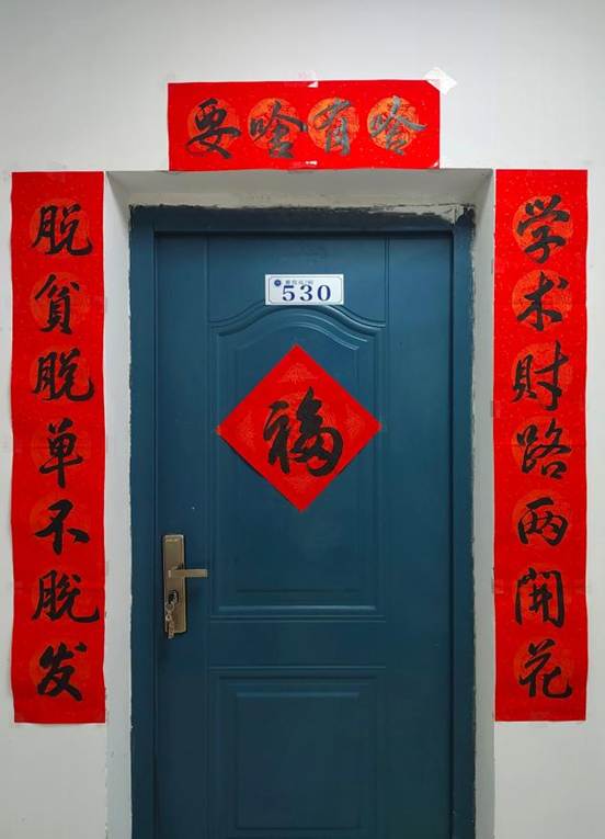 设计理念:我们寝室的设计理念是整洁和温馨,严格按照要求整理寝室卫生,轮流值日并定期对寝室进行大扫除,使其保持干净整洁,同时我们也营造温馨的寝室氛围,门口有我们一起粘贴的对联,寝室内我们也以浅粉和天蓝色的墙纸来装饰,在桌面上摆放一些盆栽和饰品,体现了生活的气息。
