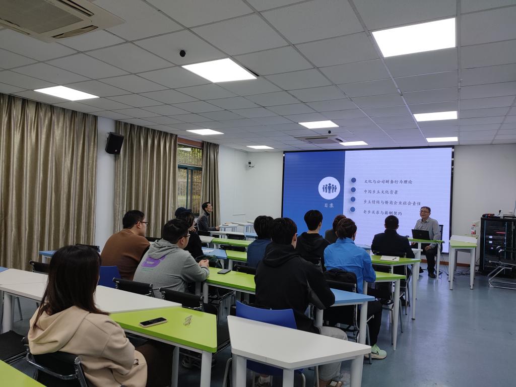 讲座中,吴战篪围绕着文化与公司财务行为理论、中国乡土文化背景、乡土情结与侨商企业社会责任、老乡关系与薪酬契约等四方面进行阐述,通过对《乡土情结与企业社会责任——基于中国侨资上市公司的经验研究》和《老乡关系、群体信任与高管薪酬契约》2篇论文结构内容进行分析,结合三个子课题的论证过程研究,阐释了中国乡土文化与企业社会责任的真正含义。